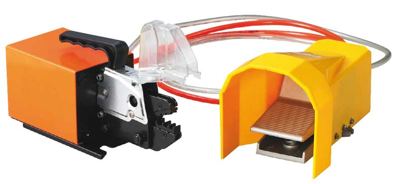 Станок оснащен двухшаговым пневмоцилиндром, обеспечивающим повышение производительности и качества обжима наконечников и коннекторов.