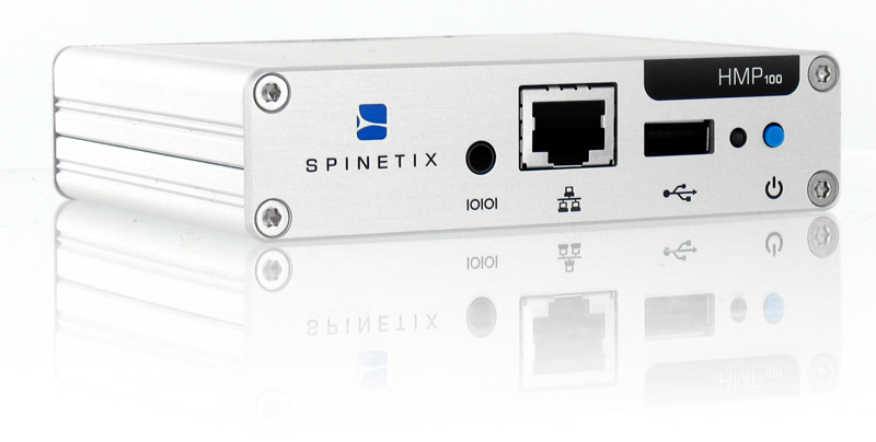 HMP130, разработанный Швейцарской компанией SpinetiX, имеет настолько малые размеры и вес, что позволяет разместить его практически в любом ограниченном пространстве. Отсутствие нагревающихся компонентов позволило обойтись без встроенных вентиляторов. Жесткий алюминиевый корпус надежно защищает внутренние компоненты от внешних воздействий. Устройство не содержит движущихся частей. В совокупности данные характеристики позволяют устанавливать HMP130 в достаточно сложных условиях эксплуатации (наличие пыли, невозможность обеспечения эффективного охлаждения, возможность механического воздействия и т.п.). Для HMP130 не требуется организация работ по обслуживанию. HMP130 может быть размещен на задней панели монитора. Встроенная операционная система не подвержена вирусным атакам.